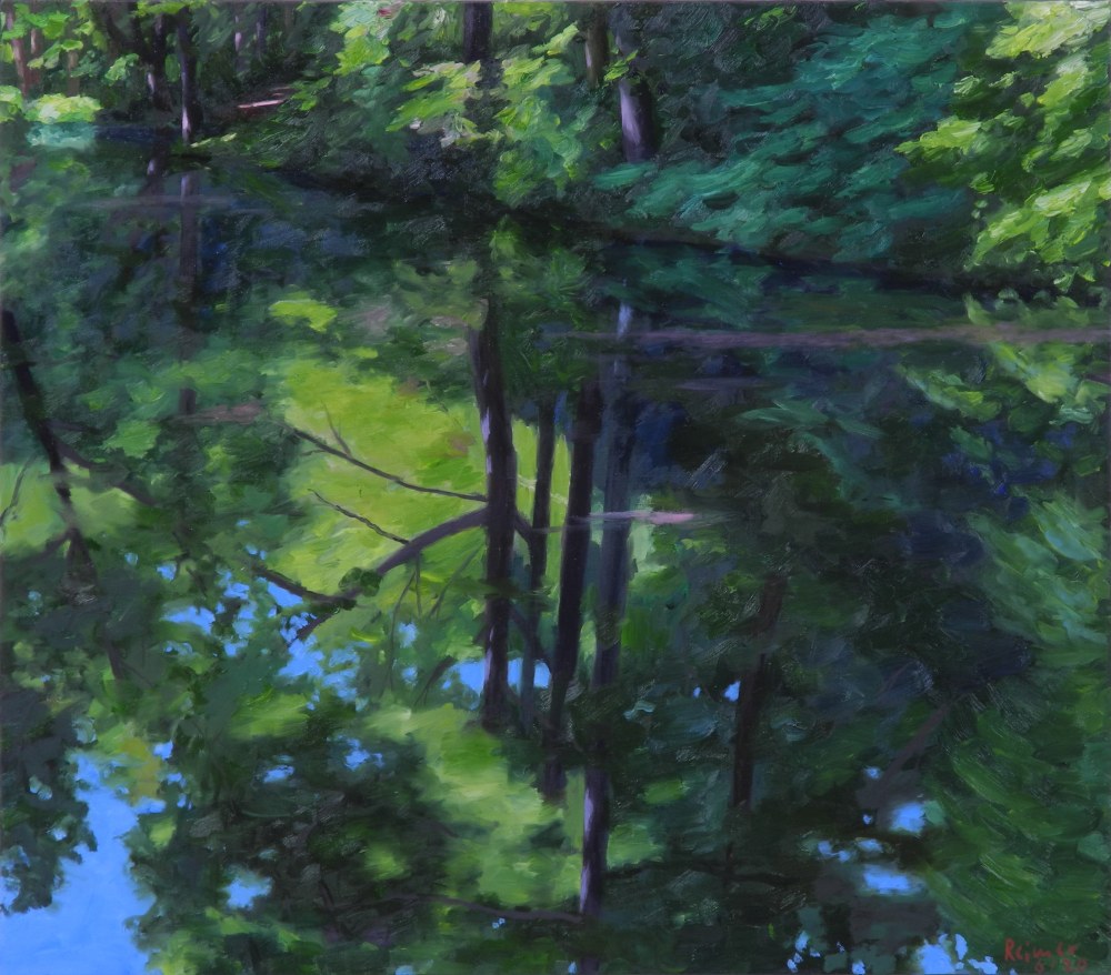 06/30 Spiegelung Tiergarten, 92 x 103 cm, Öl auf Leinwand, 2020