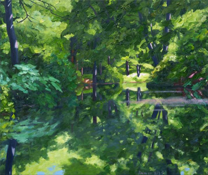 06/30 Spiegelung Tiergarten, 92 x 103 cm, Öl auf Leinwand, 2020
