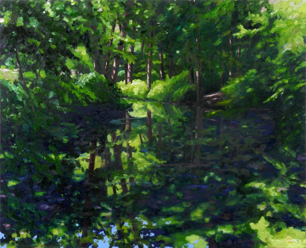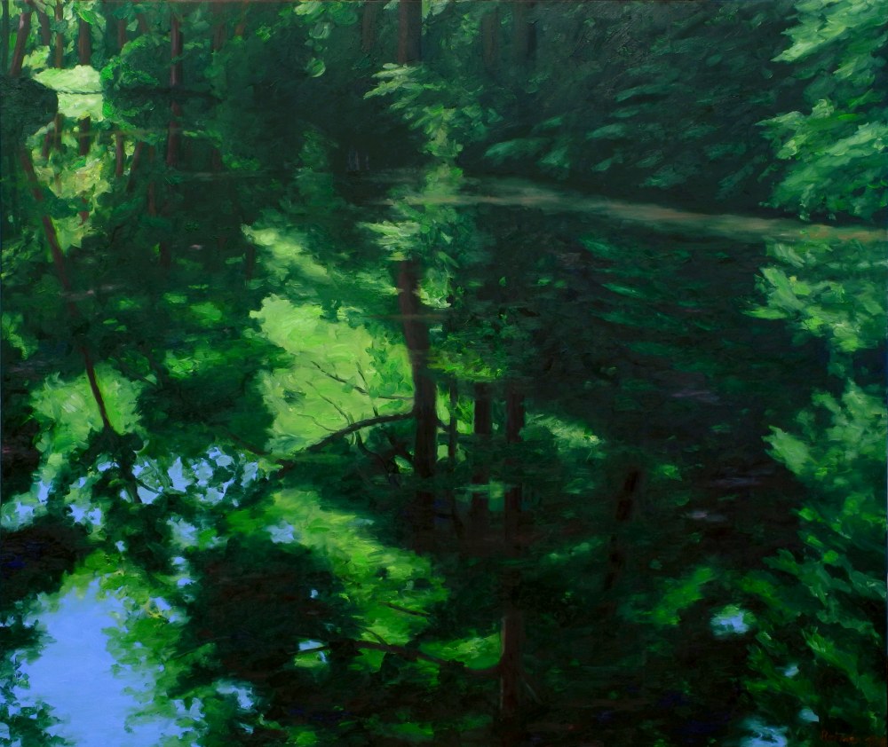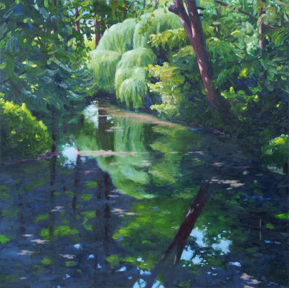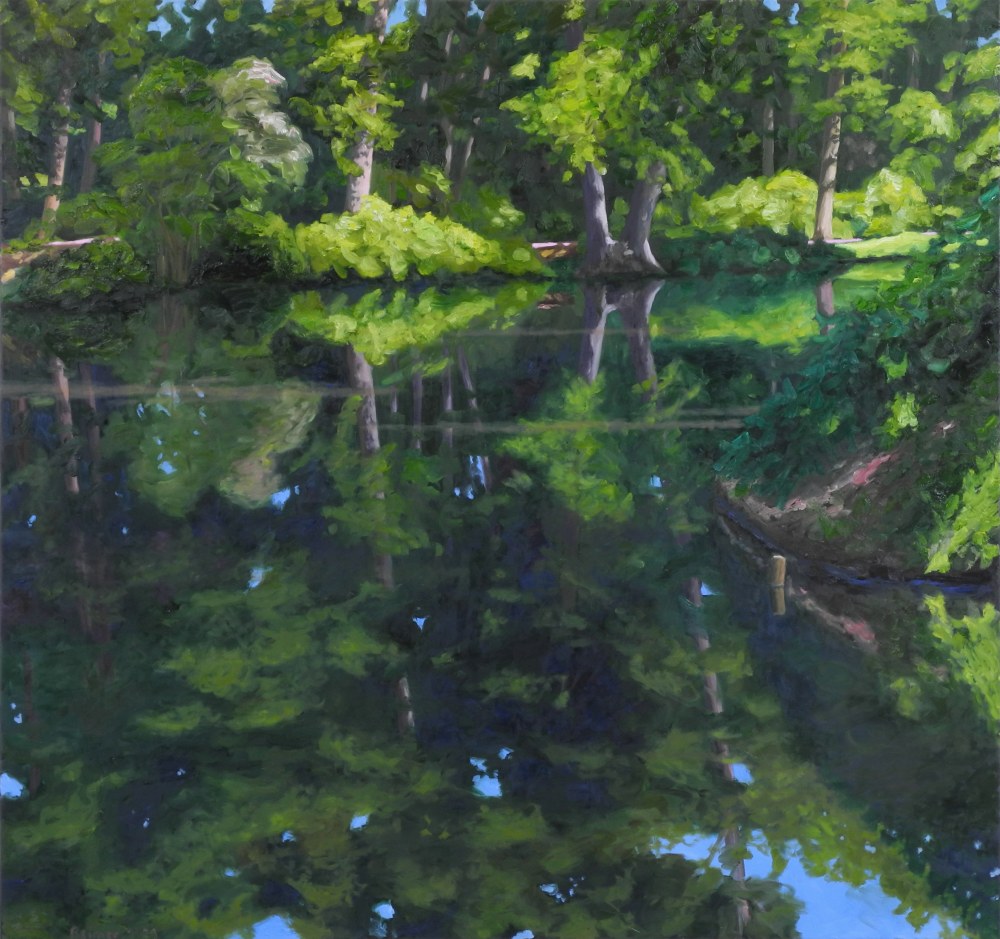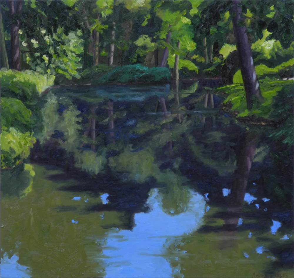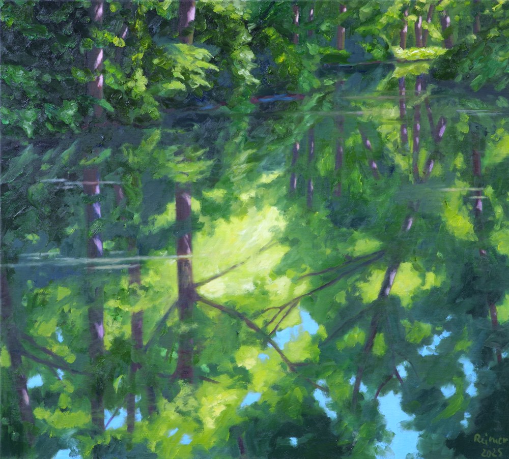 06/30 Spiegelung Tiergarten, 92 x 103 cm, Öl auf Leinwand, 2020